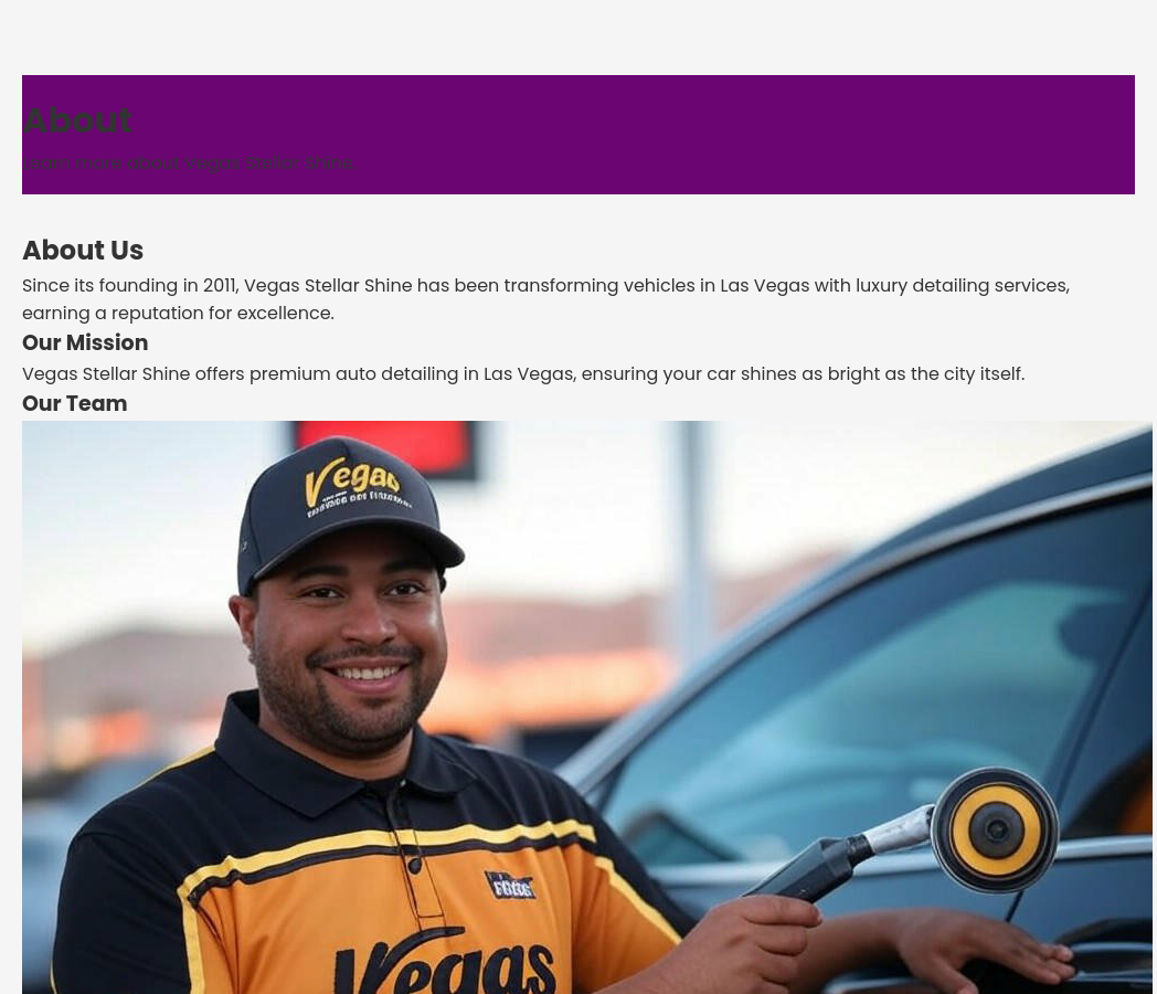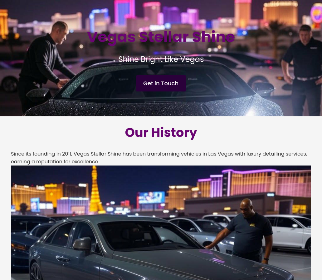 Since its founding in 2011, Vegas Stellar Shine has been transforming vehicles in Las Vegas with luxury detailing services, earning a reputation for excellence. This template is crafted to align with such a legacy, emphasizing key values like Perfection in delivering a flawless finish, Luxury in providing a premium detailing experience, and Customer Satisfaction in ensuring every client leaves happy. With ForgeVista, you can highlight specialized services such as Exterior Detailing for a sparkling finish, Interior Cleaning for a spotless cabin, and Paint Correction to restore your car’s shine. A standout premium feature—ceramic coating for long-lasting protection—can be prominently displayed to attract discerning clients seeking the best for their vehicles.